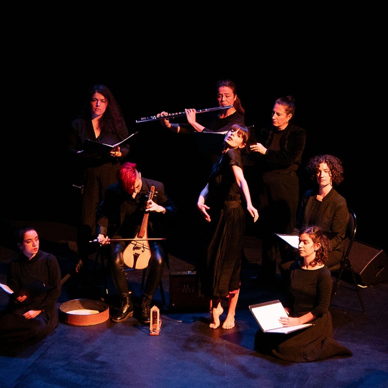 L’Ensemble Irini renoue avec ses origines en revenant vers le répertoire marial du Moyen-Âge en effectif 100% féminin. Loin d’une image désincarnée et diaphane, c’est au contraire l’image de saintes bacchantes qu’INVICTAE (“invaincues”) convoque. INVICTAE emmène les spectateurs dans un ailleurs, un Moyen-Âge onirique, habité et possédé par des femmes, qui chantent, qui jouent, qui bougent, qui dansent, sans carcans de style. Pour sa première création pluridisciplinaire, Irini invite la danseuse et chorégraphe Faustine Aziyadé qui fait naître des tableaux avec les chanteuses et tisse le lien spatial avec le public, dans le but de faire tomber la barrière de la scène.